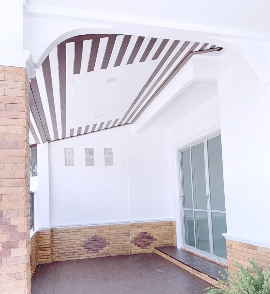 โดยดีไซน์ของบ้าน หลังจากที่ผ่านการรีโนเวทมาแล้ว บ้านดูมีความโมเดิร์นมากขึ้น ทั้งโทนสีและการตกแต่ง แต่งานหลังคายังคงเป็นทรงปั้นหยาแบบบ้านเดิม