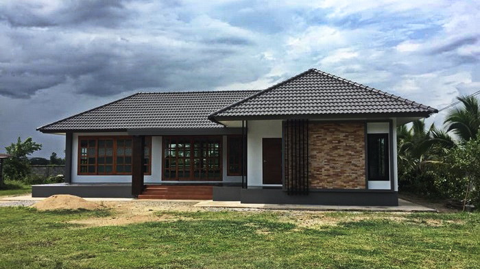 Read Moreบ้านชั้นเดียวสไตล์คอนเทมโพรารี่ หลังคารูปทรงปั้นหยา สวยเด่นด้วยบานกระจกกรอบไม้ และผนังอิฐโชว์แนว งบ 1.6 ล้านบาท