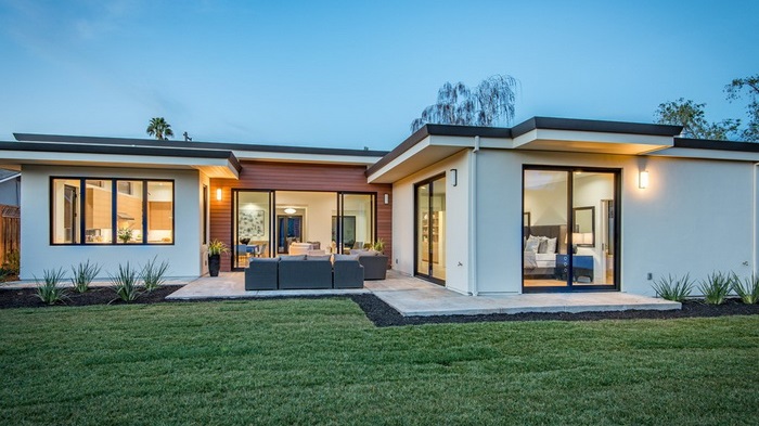 แบบบ้านชั้นเดียวยกพื้นต่ำ หลังคาลาดเอียงมีเอกลักษณ์ ตกแต่งทันสมัยในสไตล์โมเดิร์น