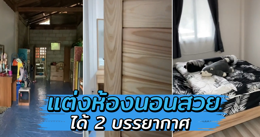 หนุ่มงบน้อยทำบ้านแต่พอตัว 1 หลัง 2 บรรยากาศ ถึงด้านนอกจะเก่า แต่ห้องนอนเรียบหรู
