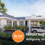 สนามหญ้าด้านหน้าตัวบ้านที่กว้างและสดชื่น