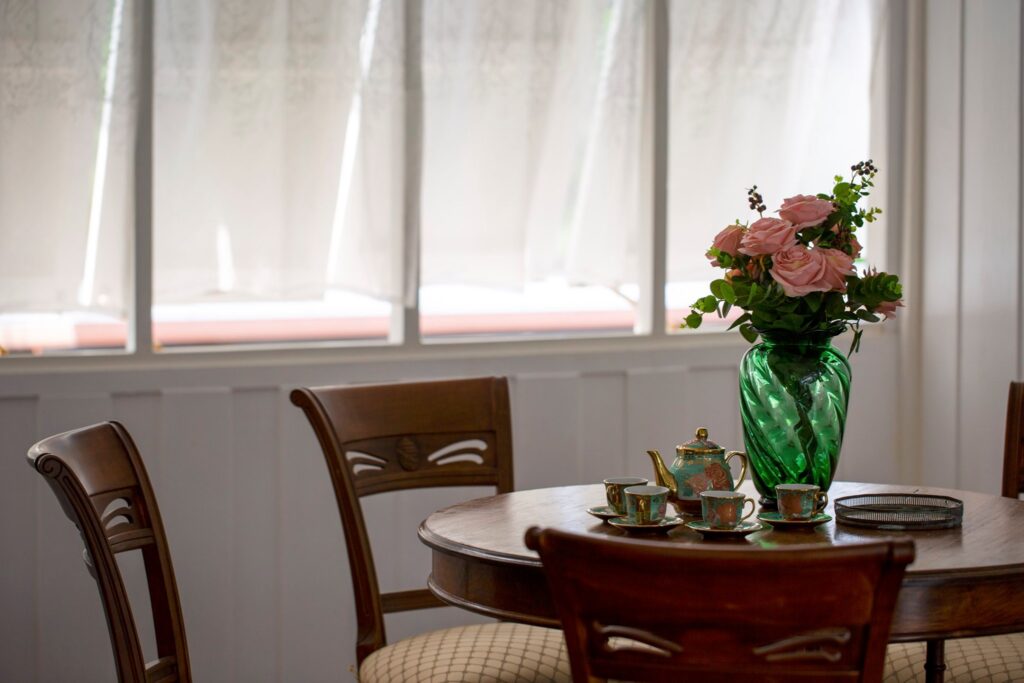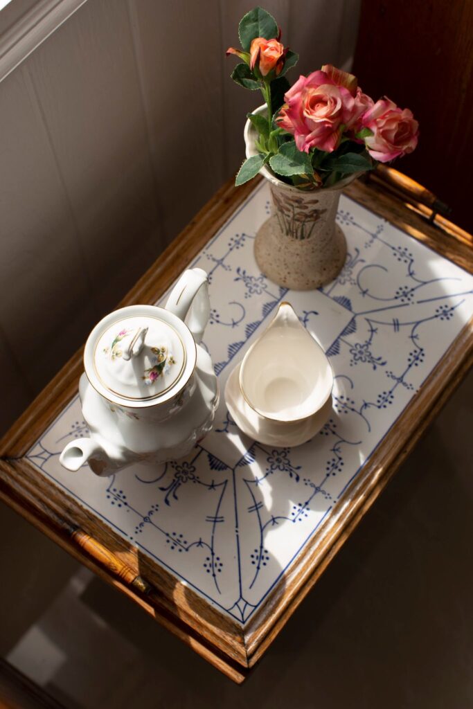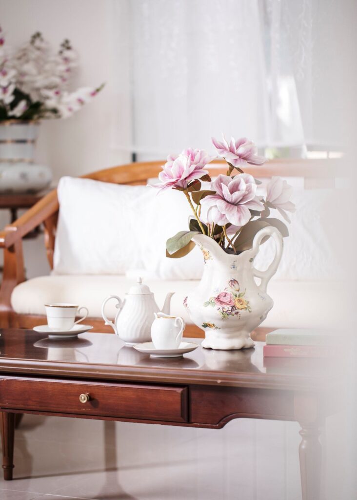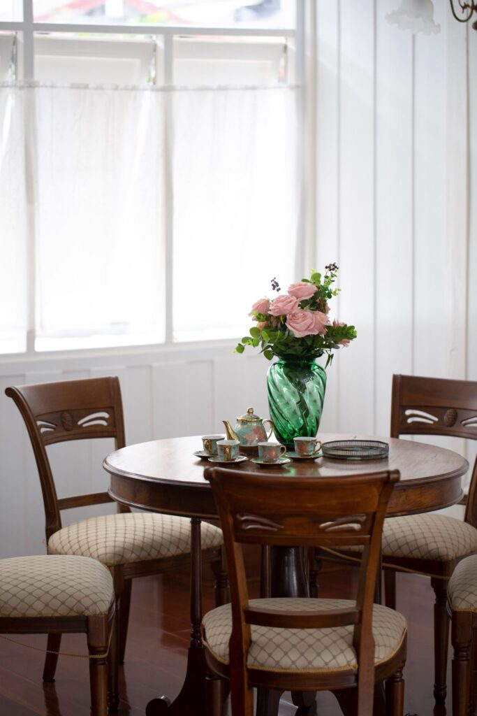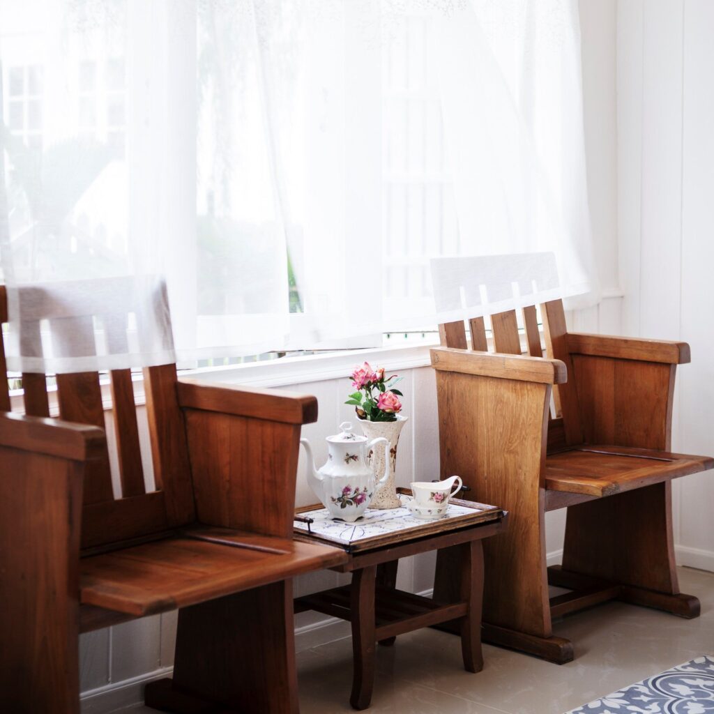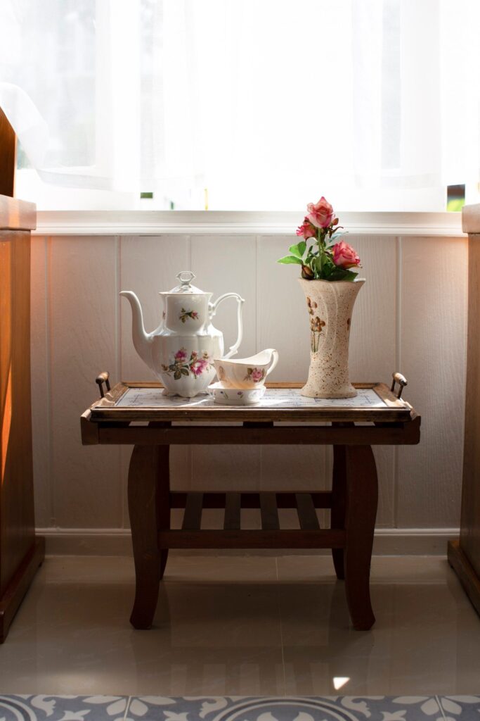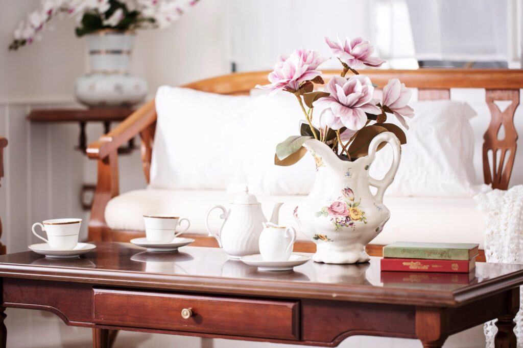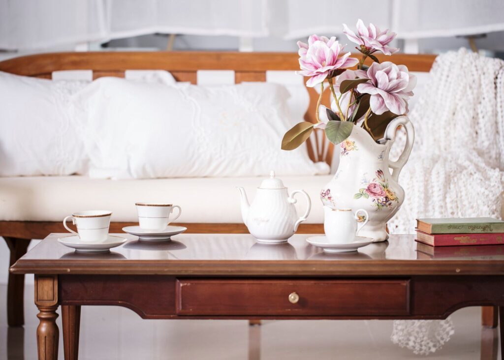 ชุดโต๊ะไม้กาแฟที่เข้ากันกับชุดถ้วยกาแฟแบบอิงลิชคันทรี