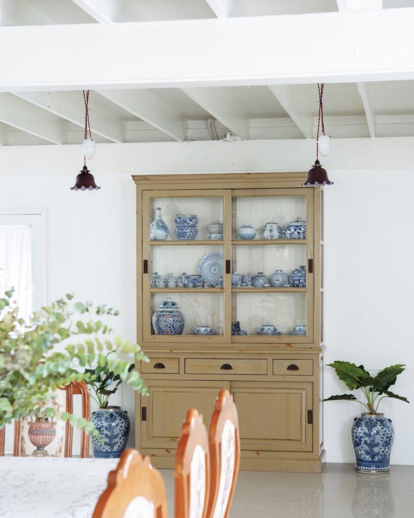 ตู้โชว์ที่เต็มไปด้วยภาชนะเครื่องเคลือบ