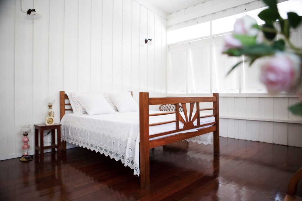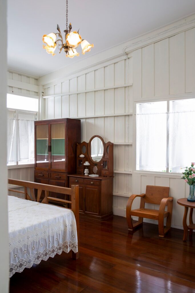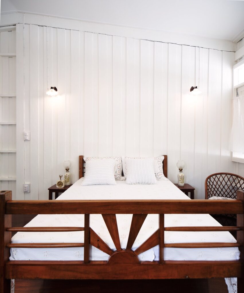 ทางด้านของห้องนอนนั้น ถูกตกแต่งอย่างเรียบง่าย ภายในมีเพียงเตียงไม้และเฟอร์นิเจอร์อย่างเก้าอี้และโต๊ะเล็ก ๆ เพื่อให้ผู้พักอาศัยให้ความเต็มที่กับการพักผ่อน