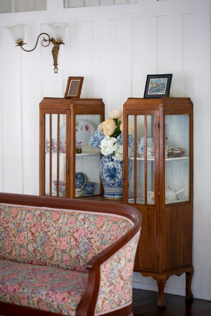 การตกแต่งภายในบ้านจะใช้เฟอร์นิเจอร์และของตกแต่งในแนววินเทจ โคโลเนียลและอิงลิชคันทรี จึงให้กลิ่นอายที่มีความเก่าคลาสสิค พร้อมกับความหรูหราที่มาคู่กัน