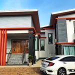 สวนหน้าบ้านพร้อมทางเดินที่ปูด้วยคอนกรีต
