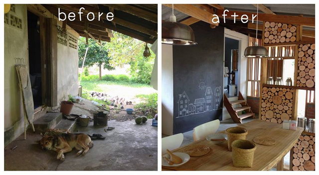 จากครัวเดิมที่เก่าทรุดโทรมเเละเริ่มจะผุพัง ช่วยกัน รื้อถอน ต่อเติม ตกเเต่ง นำวัสดุธรรมชาติที่หาได้จากรอบๆตัว มาปรับใช้ …เพื่อให้ได้ครัวเเละพื้นที่นั่งทานอาหารในเเบบที่เราต้องการ ตามงบประมาณที่เรามีอยู่ จนกลายมาเป็น “พื้นที่เล็กๆ กับมื้อเเห่งความสุขในทุกๆวัน” ครับ