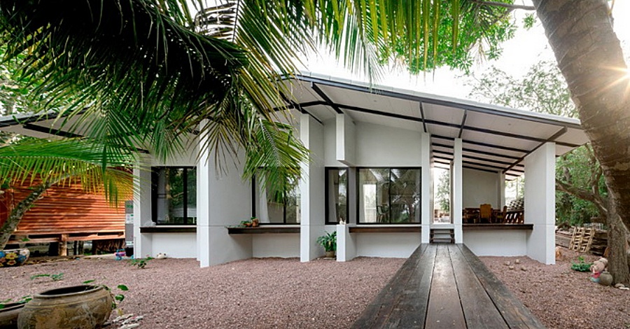 ดังเช่นคุณตาเจ้าของ บ้านริมหนองมะพร้าว หลังนี้ ที่ได้หลานชายและสถาปนิกหนุ่มไฟแรง คุณภุชงค์ สถิรพิพัฒน์กุล มาช่วยสานฝันสร้างบ้านสวนบนที่ดินติดแม่น้ำและสวนมะพร้าวให้เป็นจริง ในงบประมาณเพียง 660,000 บาท