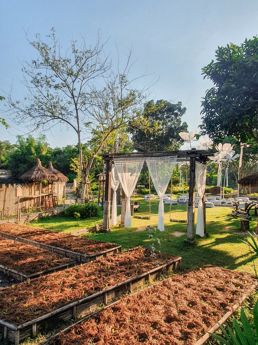ที่หน้าแปลง เจ้าของฟาร์มได้สร้างศาลาเล็กๆ พร้อมชิงช้าเอาไว้ เพื่อให้เป็นมุมสำหรับการถ่ายรูปโดยเฉพาะ ถ้าหากเป็นช่วงที่ผักขึ้นเขียวขจี รับรองว่าต้องได้ภาพที่สวยงามแน่นอน