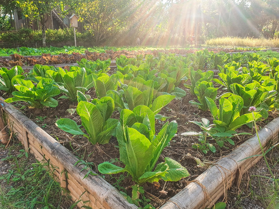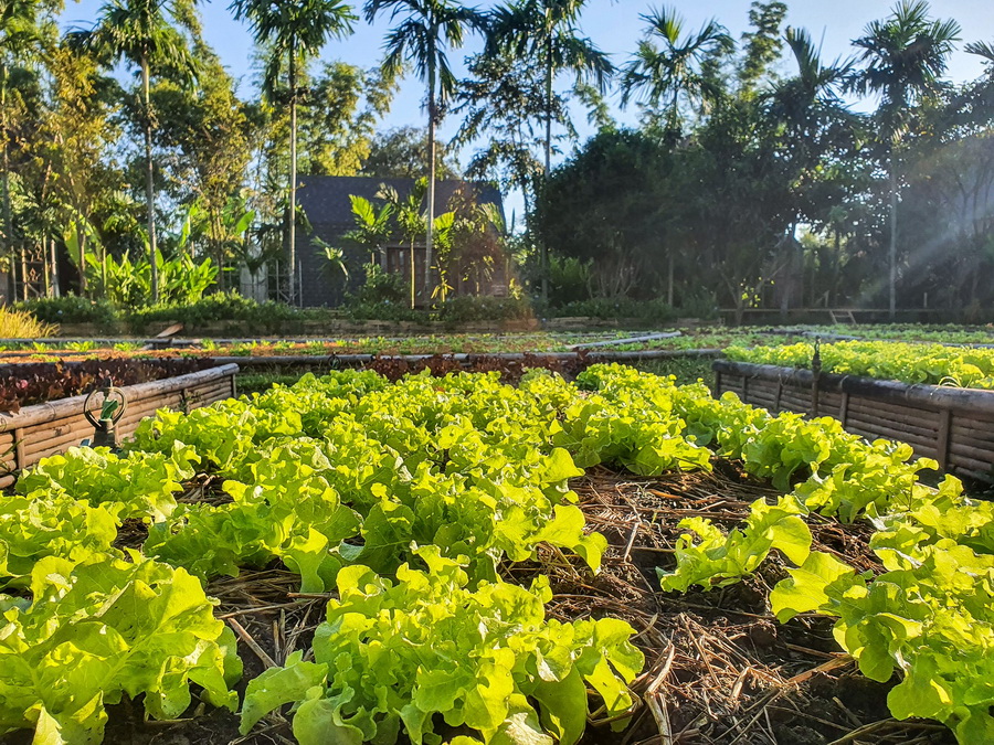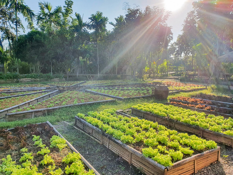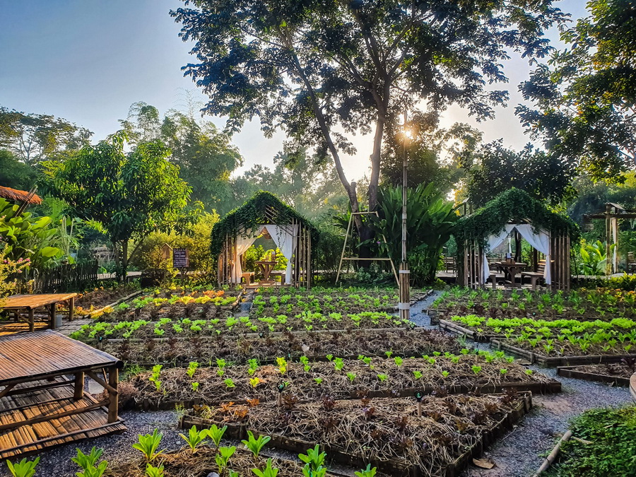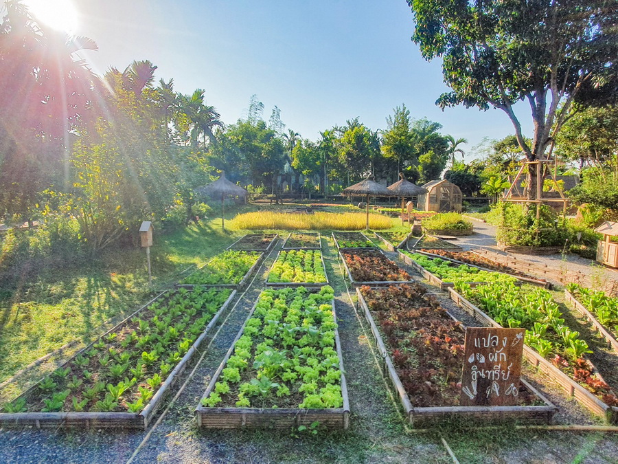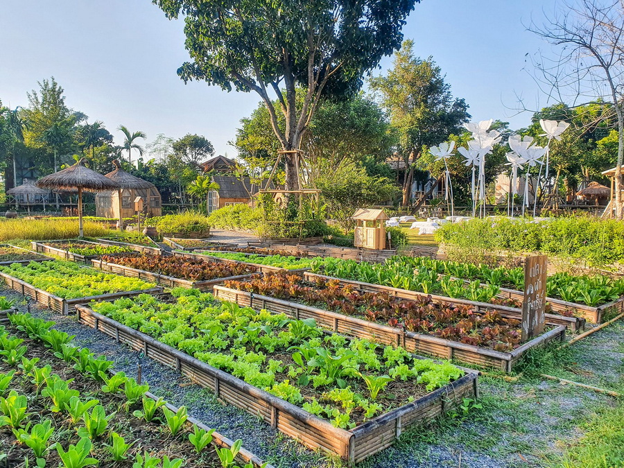 การปลูกผักแต่ละชนิดจะูกปลูกอยู่บนแปลงที่ถูกออกแบบให้มีพื้นที่เป็นสัดส่วน จึงดูแลได้ง่าย รวมถึงการเดินถ่ายรูปก็ทำให้สะดวกและได้ภาพที่สวยงามเช่นกัน