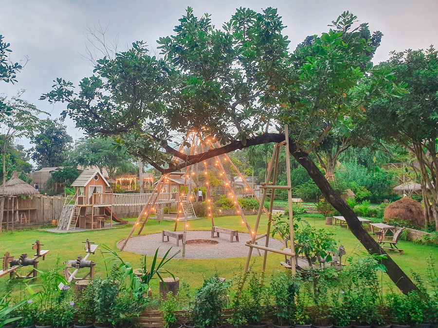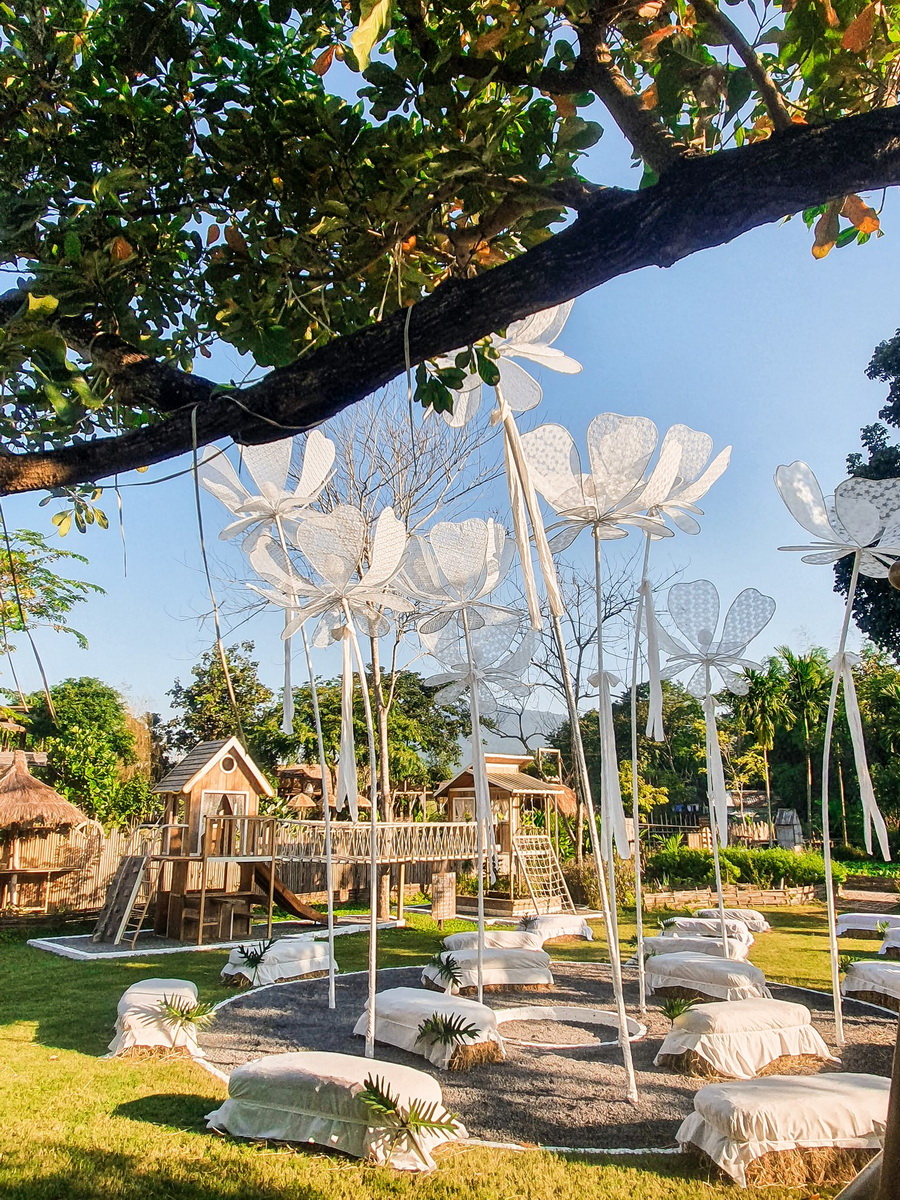 พื้นที่สวนนี้เป็นลานกิจกรรมกลาง โดยมีที่นั่งเป็นกองฟางจัดวางไว้ทั่วบริเวณ มีงานศิลปะรูปดอกไม้ปักไว้โดยรอบเช่นกัน สำหรับครอบครัวที่มีเด็กมาด้วย ด้านหลังก็มีลานเครื่องเล้กให้เด็กๆ ได้เล่นเพลินจนลืมเวลากันเลย