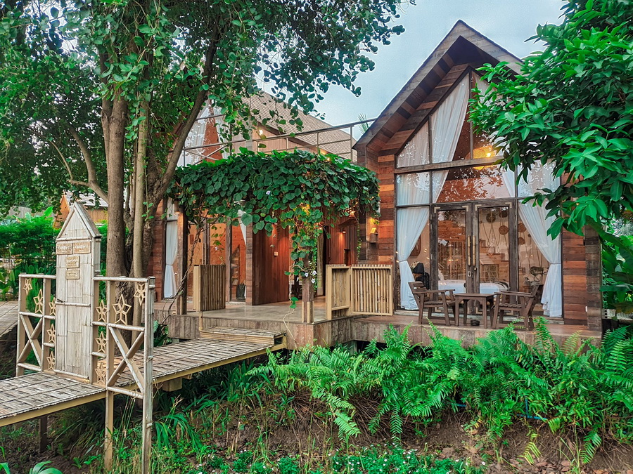 ตัวบ้านพักถูกออกแบบแนววินเทจ โดยมีไม้เป็นวัสดุหลัก จึงทำให้บ้านมีความกลมกลืนไปกับธรรมชาติโดยรอบ บ้นแต่ละหลังจะถูกจัดวางให้ห่างจากกันพอประมาณ จึงให้ความเป็นส่วนตัวได้ดี