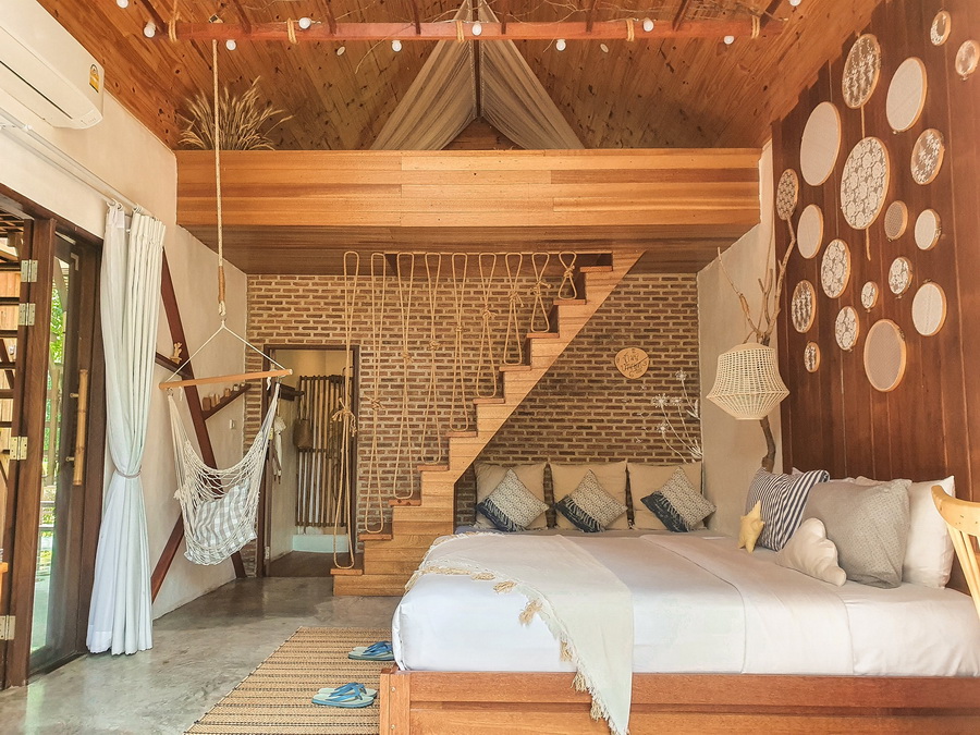 อย่างเช่นหลังนี้ที่เป็นบ้านแฝด จึงเหมาะกับนักท่องเที่ยวที่มาแบบครอบครัว ซึ่งมีห้องนอนที่กว้าง รวมถึงมีพื้นที่ส่วนกลางให้ได้แชร์ความสนุกร่วมกันอีกด้วย