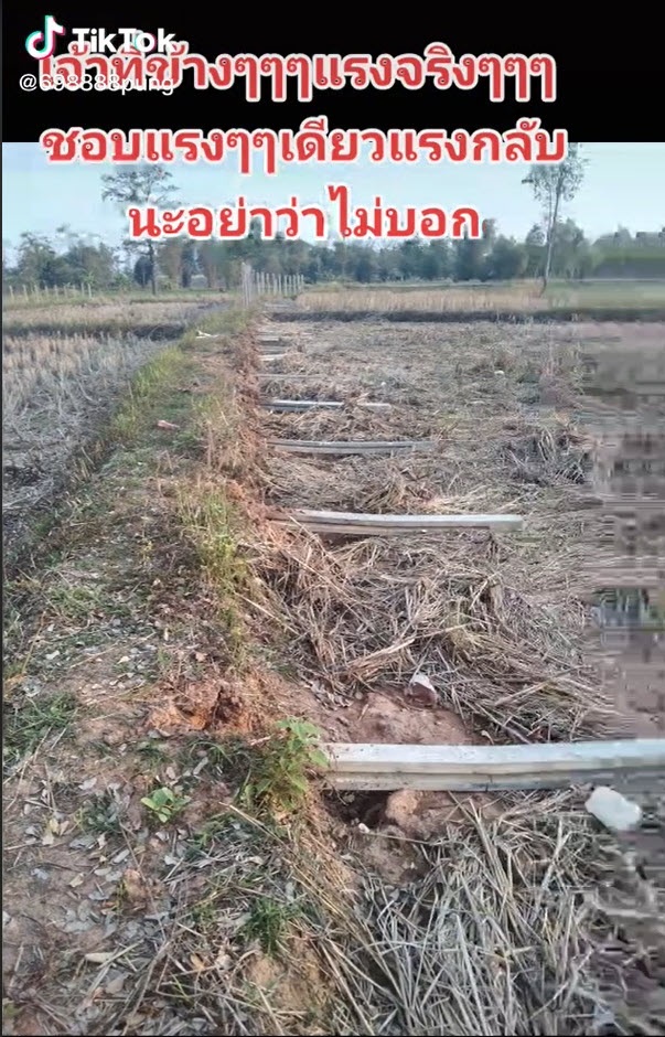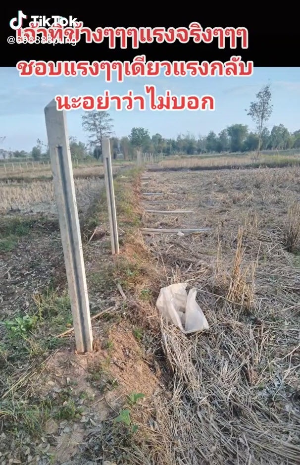 ก่อนหน้า เจ้าหน้าที่ก็เข้ามาจะสรรพื้นที่คันนาให้อย่างถูกต้องแล้ว และการลงเสาครั้งนี้ ก็ลงเสาบนคันนาทางฝั่งตัวเองแท้ ๆ