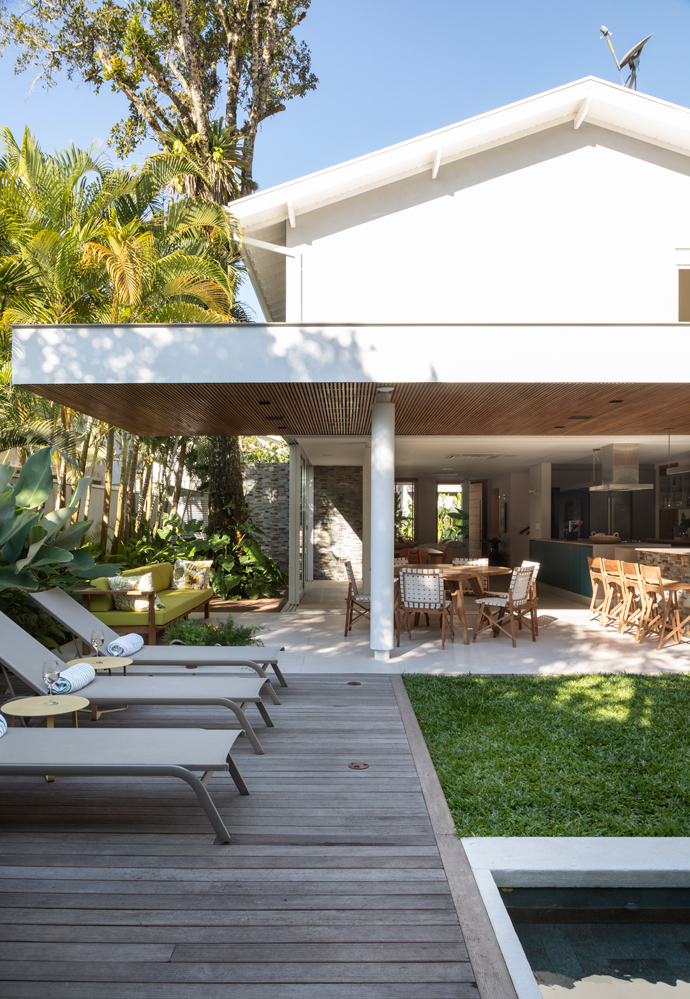 BALEIA บ้านที่ออกแบบมาเพื่การเป็นบ้านพักตากอากาศโดยเฉพาะ จึงมีการออกแบบที่เน้นความเปิดโล่ง โปร่งสบาย สามารถเชื่อมต่อพื้นที่ส่วนต่าง ๆ ภายในบ้านและนอกบ้านได้อย่างสะดวกง่ายดาย เพื่อตอบสนองไลฟ์สไตล์การทำกิจกรรมและการพักผ่อน