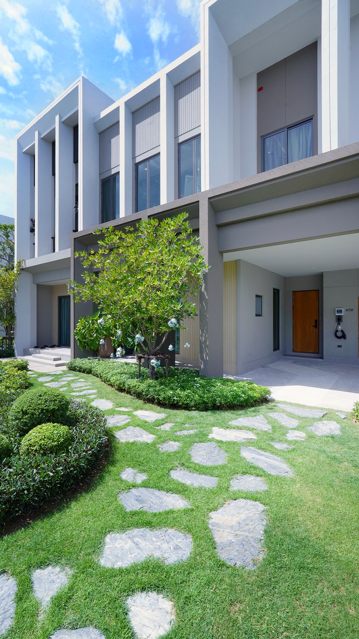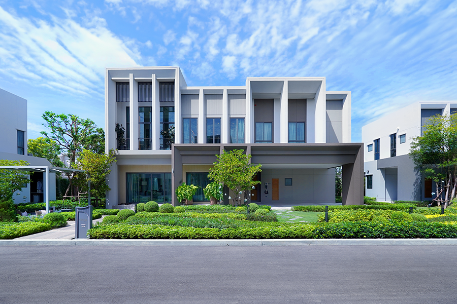 มาที่ตัวบ้าน ที่เป็นบ้านเดี่ยวซีรีส์ใหม่ล่าสุด Modern Colonnade Style เห็นได้จากการออกแบบด้วยเส้นสายโมเดิร์น เน้นฟาซาดเส้นแนวตั้งแนวนอน แต่ก็ให้กลิ่นไอความคลาสสิกจากสถาปัตยกรรมดั้งเดิมของอิตาลี