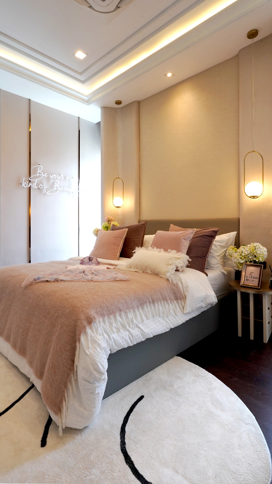 ในบ้านตัวอย่างตกแต่งห้องนอนให้ดูในหลายสไตล์ ทั้งห้องหรูเรียบ ห้องที่เต็มไปด้วยความเท่ของผู้ชาย รวมถึงห้องของเด็กผู้หญิงหวานๆ ที่สำคัญคือเพดานห้องนอนสูงสุดถึง 4 เมตร โล่งและอลังการไม่เบา