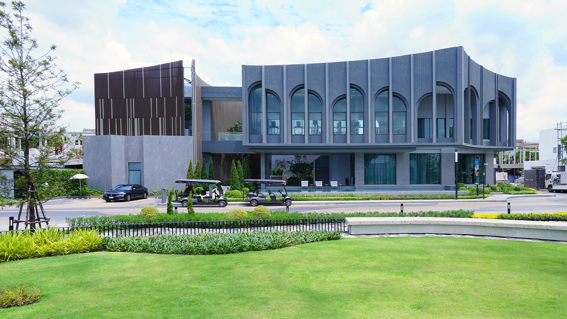 โครงการได้แรงบันดาลใจมาจาก Lake Como ทะเลสาบที่สวยที่สุดในอิตาลี เราเลยเห็นบรรยากาศภายนอกที่เต็มไปด้วยพื้นที่สีเขียว ส่วนกลางที่มีทั้งสวน สระน้ำ รวมไปถึงคลับเฮ้าส์ผสมผสานศิลปะยุคเรเนซองส์-โมเดิร์น-โกธิค