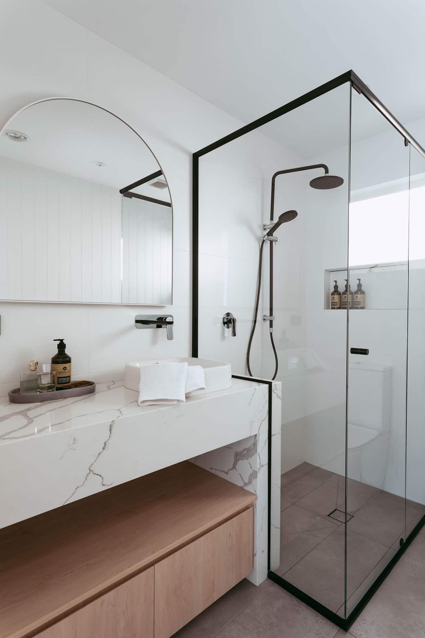 สำหรับห้องน้ำ ก็เป็นอีกห้องที่มีรายละเอียดการตกแต่งที่เรียบง่าย โดยจะเน้นไปที่การจัดสรรค์พื้นที่ใช้สอยเอาไว้อย่างเป็นสัดส่วน