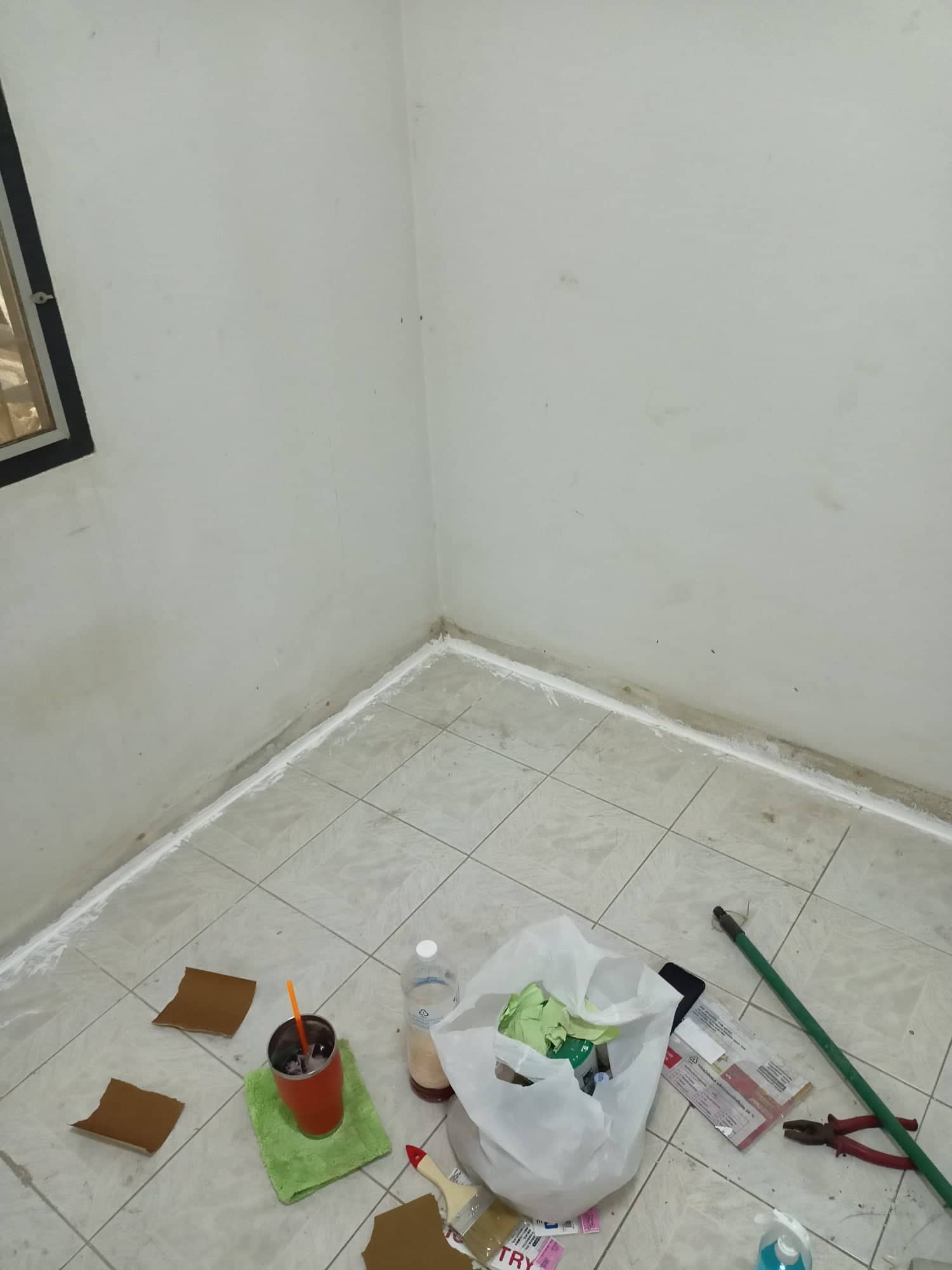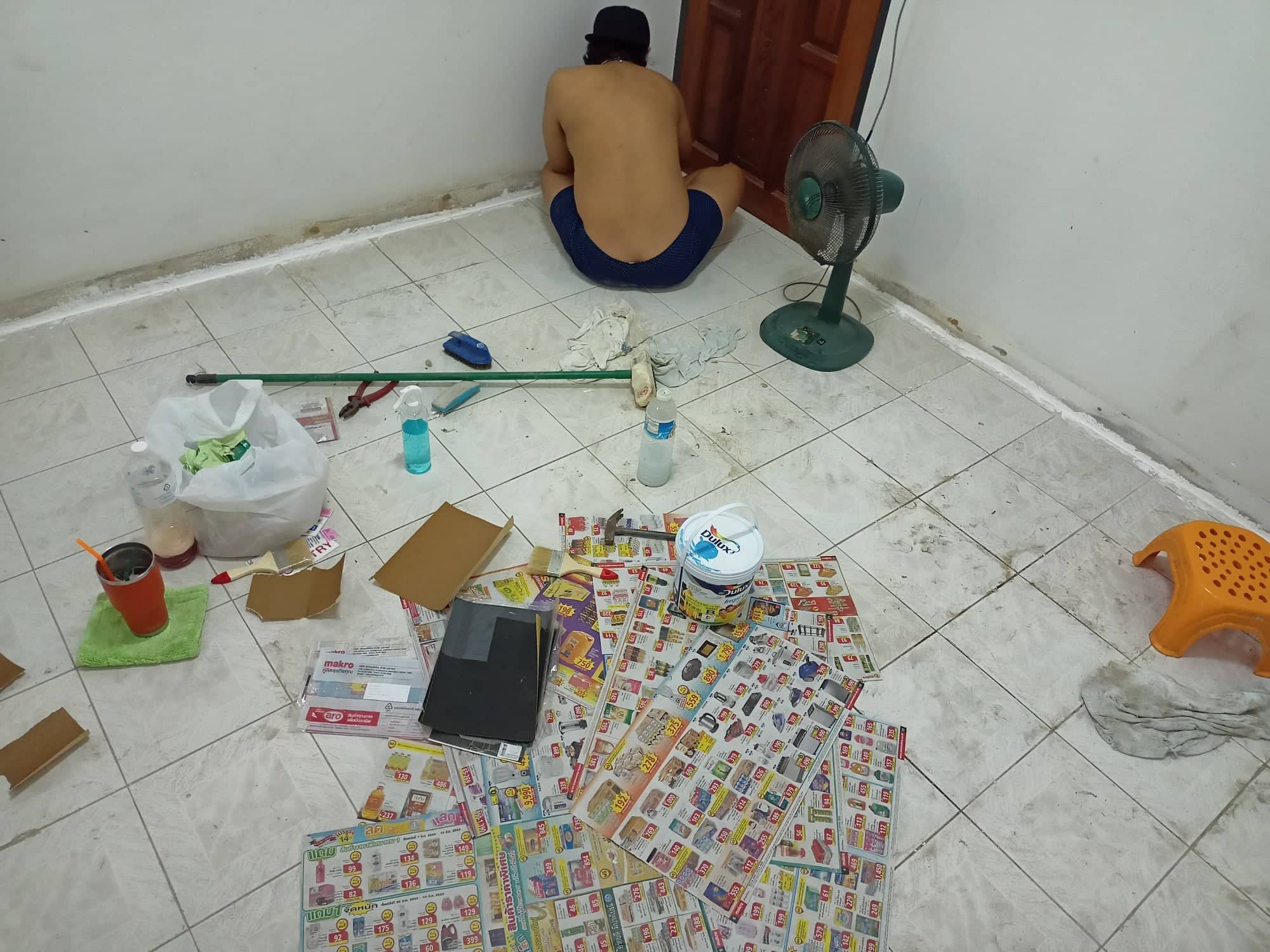 เริ่มจากการขนของย้ายไปอีกห้องและทำความสะอาดห้องเพื่อเริ่มต้น ในภาพคือของที่ขนย้ายไปไว้อีกห้องเรียบร้อยแล้ว