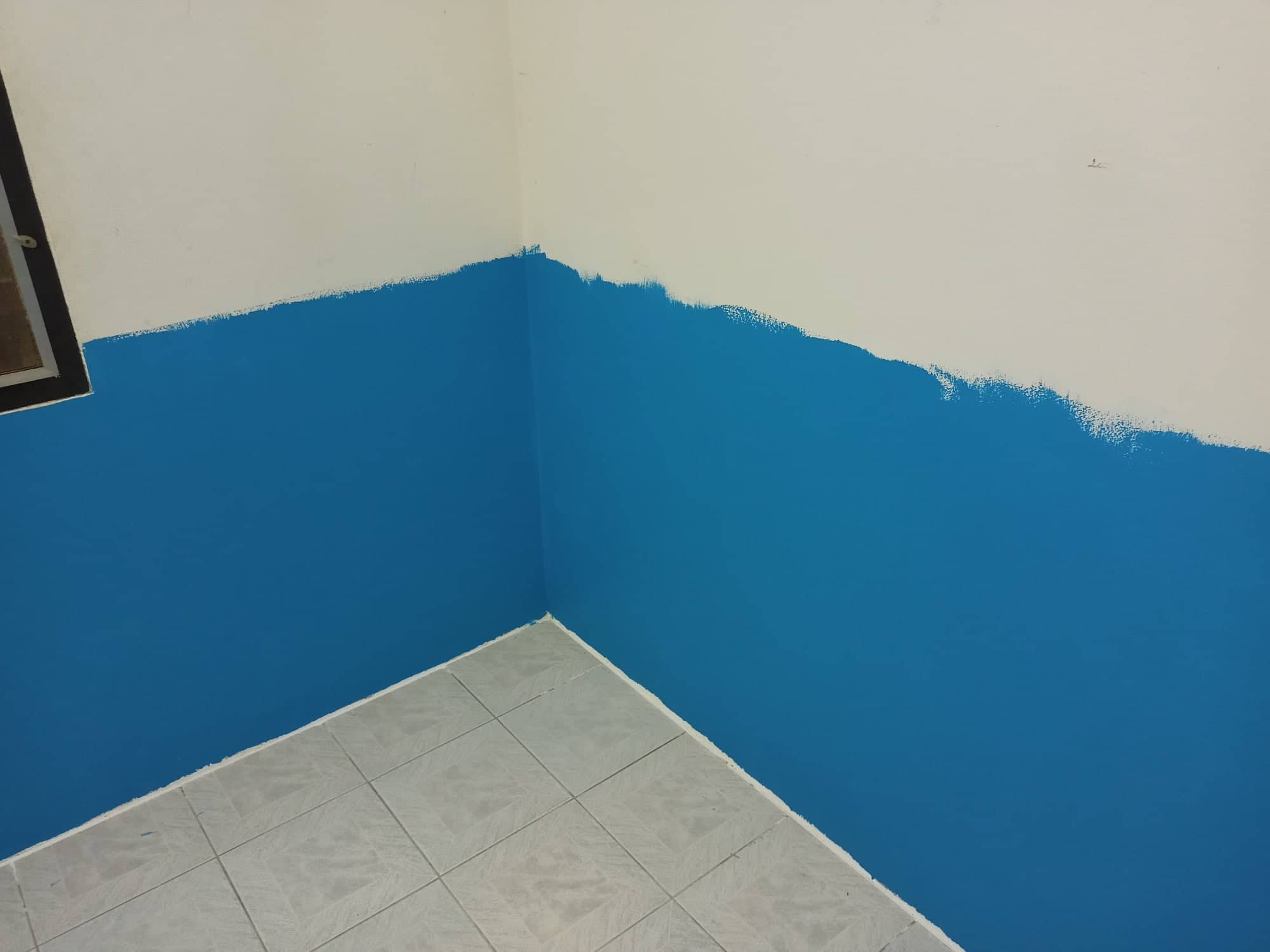 เพื่อนช่วยขัดกำแพง หลังจากเอาแผ่นไม้ปิดขอบห้องที่มีปลวกออกไปแล้ว จากห้องในบ้านที่อายุเกือบ 30 ปี
