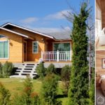 บ้านโครงสร้างไม้ ออกแบบรูปทรงของบ้านให้โมเดิร์น ตกแต่งด้วยงานไม้ทั้งหลัง ดูอบอุ่น เลือกใช้หลังคาเพิงหมาแหงาน ลาดเอียงเก๋ๆ ซ้อนชั้นให้เกิดมิติ ผนังสีครีมดูเข้ากันได้ดีกับไม้ที่ตกแต่งให้ทั้งหลัง