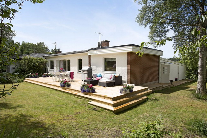 ตัวบ้านภายนอกตกแต่งด้วยอิฐสีขาวเป็นหลัก มีชานบ้านที่ทำด้วยไม้ ตกแต่งด้วยเฟอร์นิเจอร์ เหมาะสำหรับนั่งเล่นหรือรับประทานอาหารนอกบ้านพร้อมครอบครัว