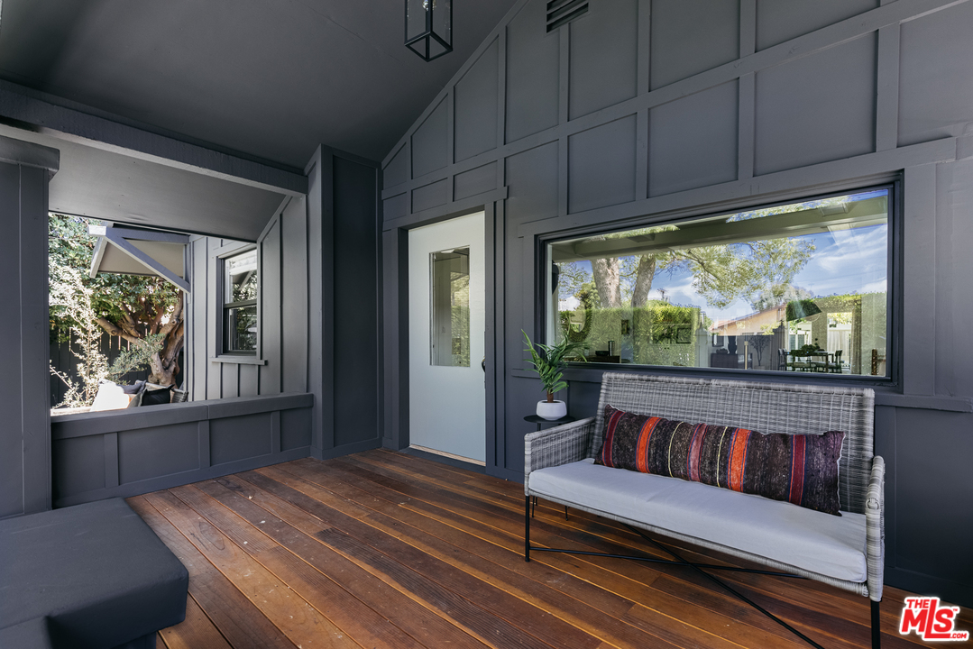 บริเวณหน้าบ้านมีเฉลียงกว้างพร้อมม้านั่งตกแต่งเอาไว้ เพื่อให้เป็นมุมสำหรับพักผ่อนในยามเช้า