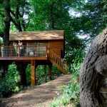 ตัวบ้านสร้างด้วยไม้ ทาด้วยสีดำ หลังคาแบนดูเป็นบ้านที่ทันสมัย ตั้งอยู่กลางป่า และยังเป็นบ้านแบบประกอบอีกด้วย เสริมชานบ้านขนาดสำหรับครอบครัว เหมาะสำหรับกิจกรรมหลากหลายภายในครอบครัว