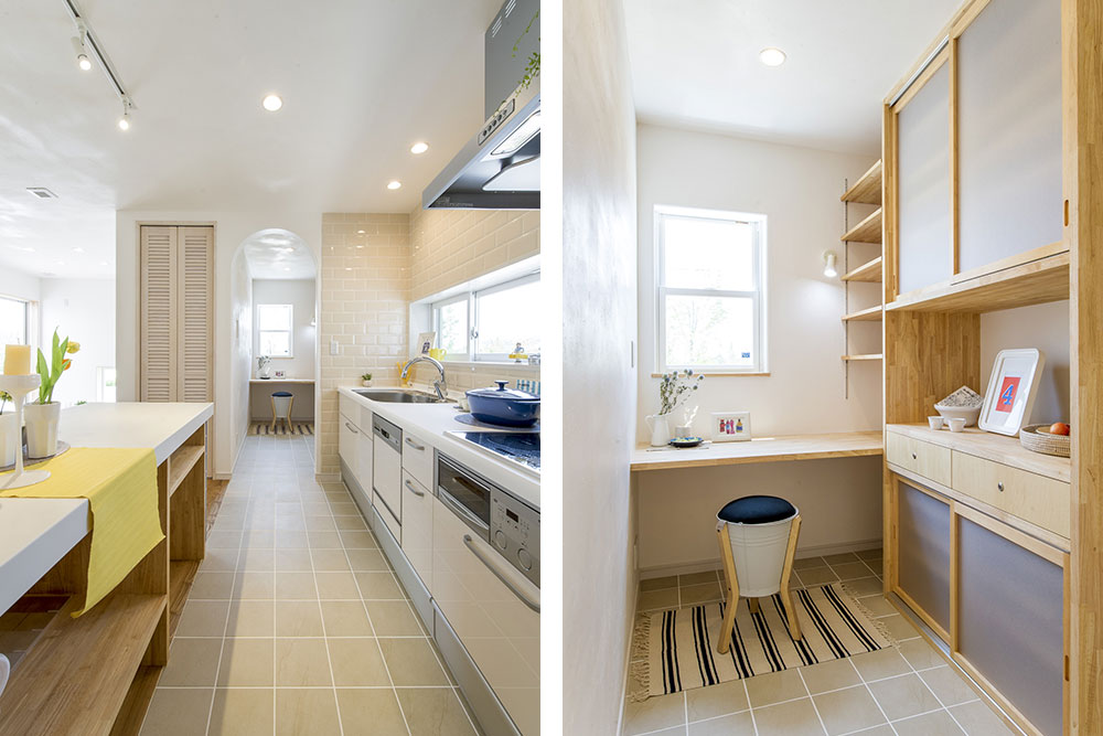 ห้องครัวและห้องรับประทานอาหารจะอยู่ในโซนเดียวกัน เพื่อให้มีความสะดวกสบาย และแน่นอนว่าเฟอร์นิเจอร์ก็ยังคงเป็นงานไม้เป็นหลัก จะมีแต่ส่วนเคาน์เตอร์ครัวที่จะปูด้วยกระเบื้องเพื่อให้เหมาะกับลักษณะการใช้งาน