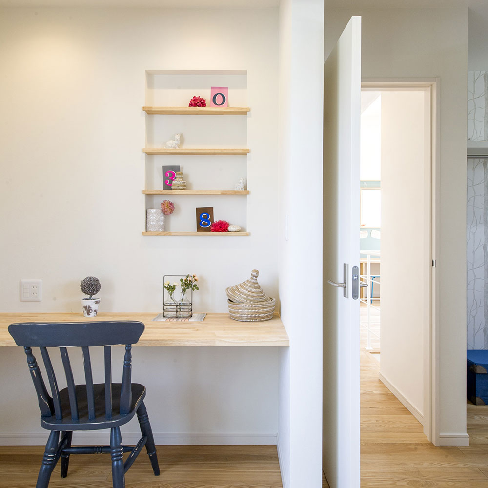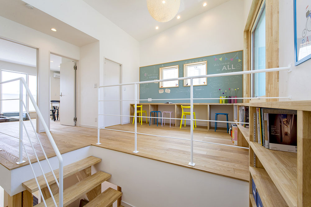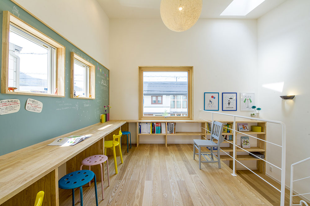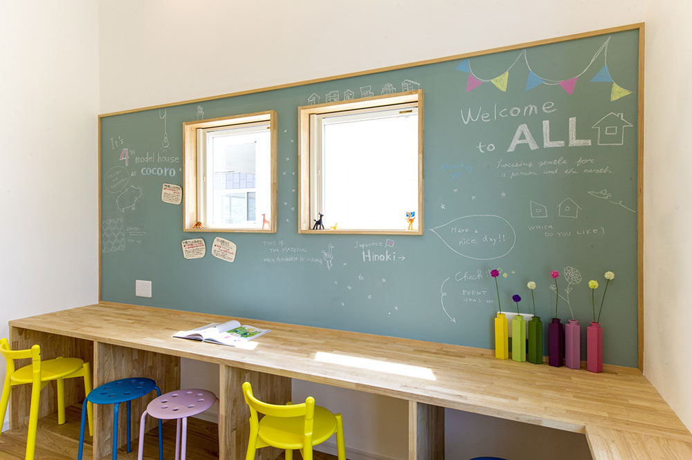 มุมสุดพิเศษตรงนี้ เป็นพื้นที่สำหรับเด็ก ๆ ที่จะได้มานั่งเล่น อ่านหนังสือ หรือทำการบ้านได้อย่างสบายใจ ที่ผนังยังเป็นกระดานที่ออกแบบมาอย่างพิเศษอีกด้วย