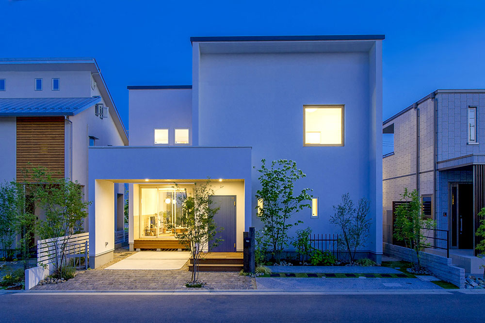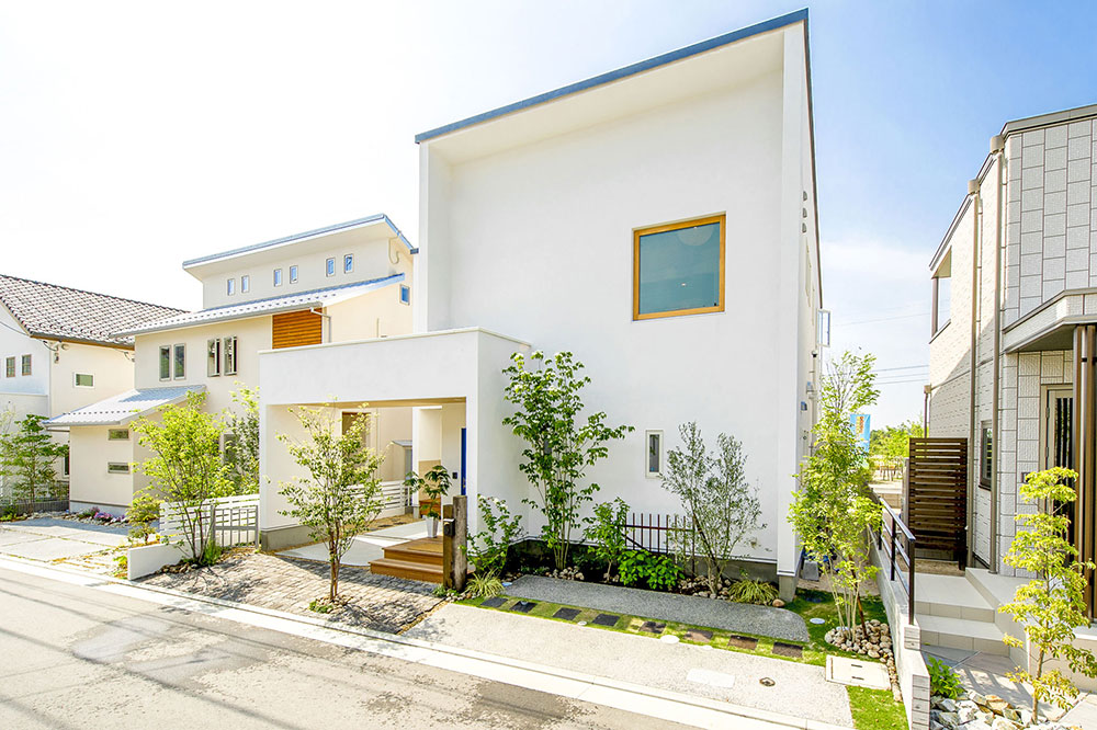 ตัวบ้านมีขนาดสองชั้น รูปทรงเป็นแบบกล่องสี่เหลี่ยม Box-shape จึงมีเส้นสายของการออกแบบที่เรียบง่ายแต่ดูทันสมัย ภายนอกตกแต่งในโทนสีขาวสว่าง จึงทำให้บ้านดูสบายตาไปทั้งหลัง