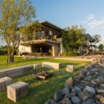 บ้านขนาดเล็ก จึงสามารถเลือกใช้โครงสร้างคอนกรีต ออกแบบรูปทรงที่เรียบง่ายที่สุด จับคู่กับหลังคาทรงจั่ว โดยรวมดูอบอุ่นและน่ารักเอามากๆ ตกแต่งด้วยไม้ตีชิดสีเทาน้ำเงิน และไม้ โทนสีขาว ดู น่ารัก น่าชัง เป็นอย่างมาก