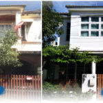โดยผนังภายนอกเป็นผนังปูนเปลือยแบบเรียบๆ พร้อมกับต่อเติมชายคาสีขาว ยังรวมไปถึงระแนงช่องลมที่มีดีไซน์แบบโมเดิร์นในโทนสีขาว เพื่อเพิ่มเอกลักษณ์ให้บ้าน