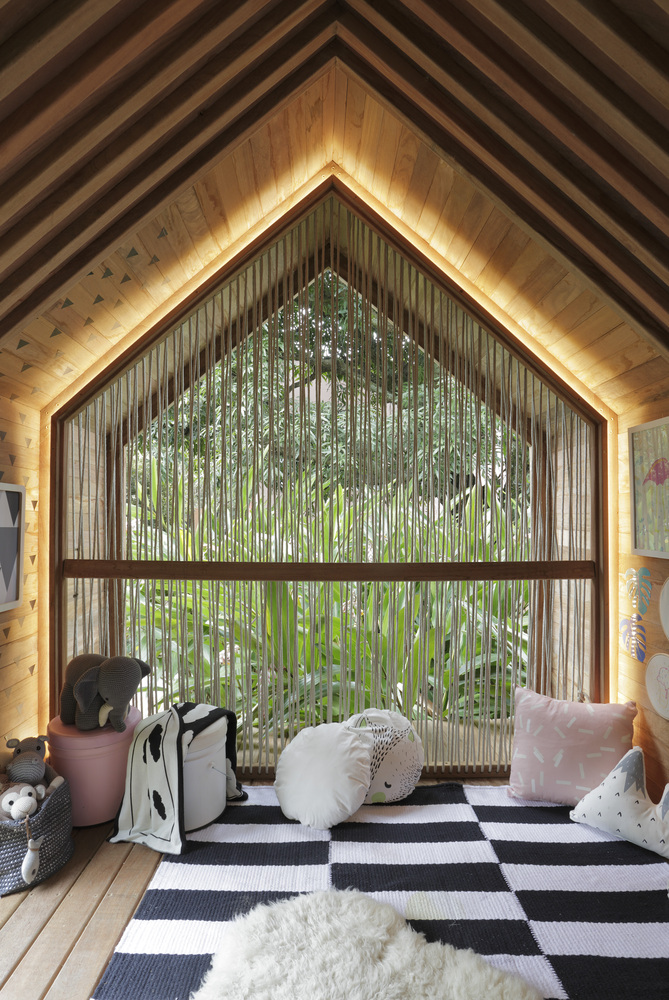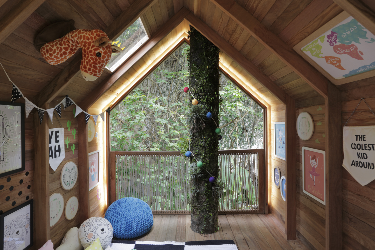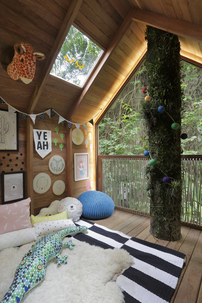 ภายในบ้านต้นไม้ออกบ้านได้สวยงามไม่แพ้บ้านจริง โดยผนังส่วนนี้จะเปิดโล่งเอาไว้ โดยสถาปนิกจะใช้เชือกกั้นเอาไว้เพื่อป้องกันการพลัดตก ซึ่งนอกจากจะปลอดภัยแล้ว ยังเป็นผลงานการออกแบบที่สวยงามแปลกตาอีกด้วย
