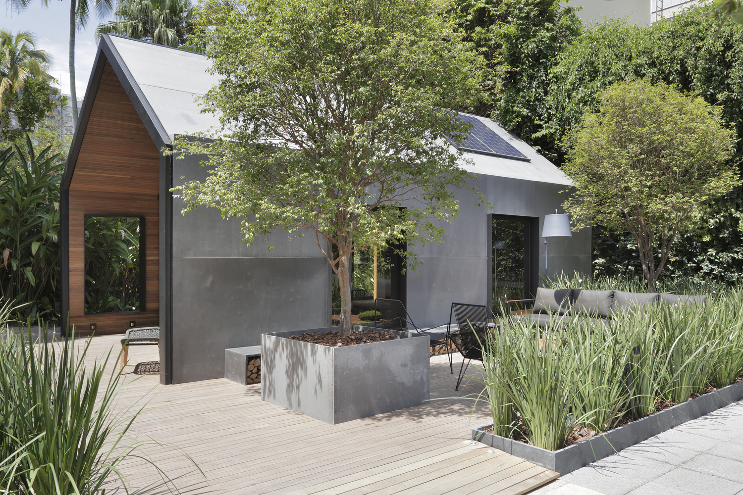 อีกมุมหนึ่งจะเป็นส่วนการพักผ่อนหลัก โดยมีผนังเปิดโล่ง มีต้นไม้จริงอยู่ด้านในอีกด้วย นอกจากนี้ บริเวณหลังคายังใช้เป็นหลังคาสกายไลท์อีกด้วย ภายในจึงสว่างได้ด้วยแสงธรรมชาติ
