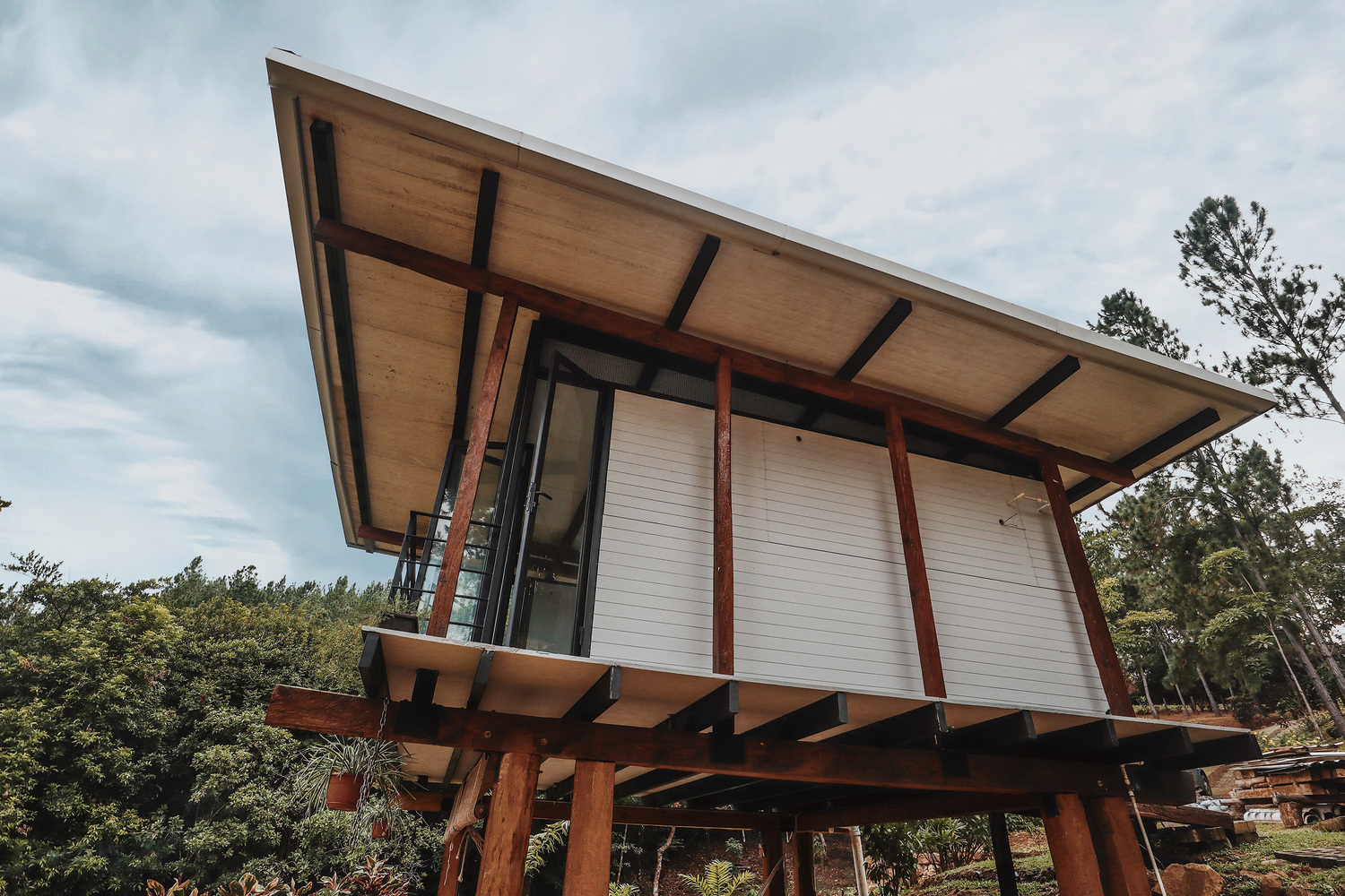 ทำให้กระท่อมหลังนี้ถูกสร้างขึ้นจากไม้สน ซึ่งเป็นไม้ในท้องถิ่น นำมาสร้างเป็นบ้านที่มีลักษณะยกใต้ถุนสูง มีพื้นที่ใช้สอยราว ๆ 57 ตารางเมตร