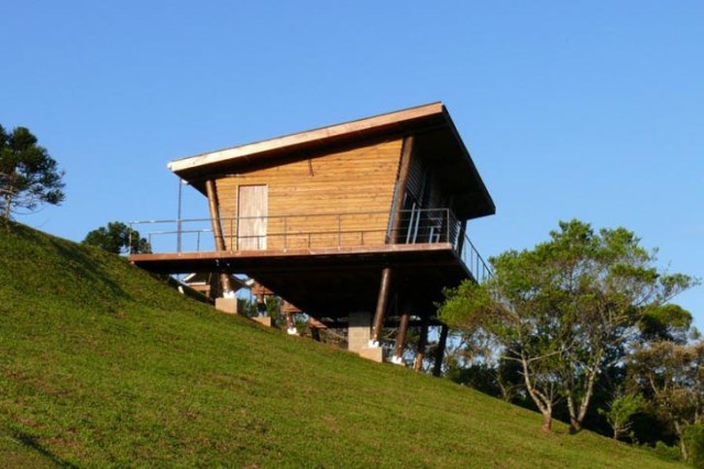 บ้านเคบินยกพื้นสูง วัสดุจากไม้ ดีไซน์หลังคาเพิงฯ เหมาะกับการประยุกต์เป็นบ้านสวน