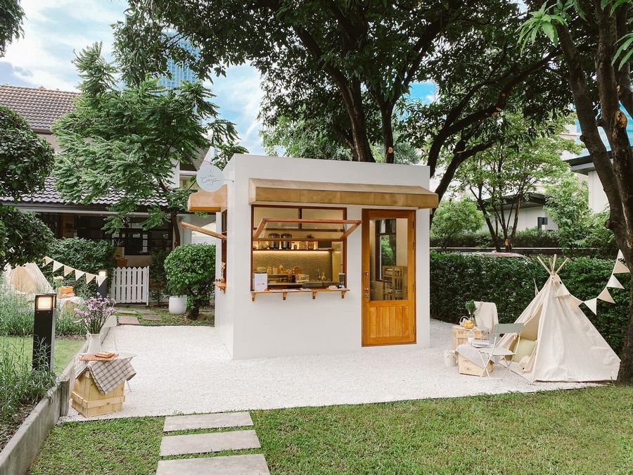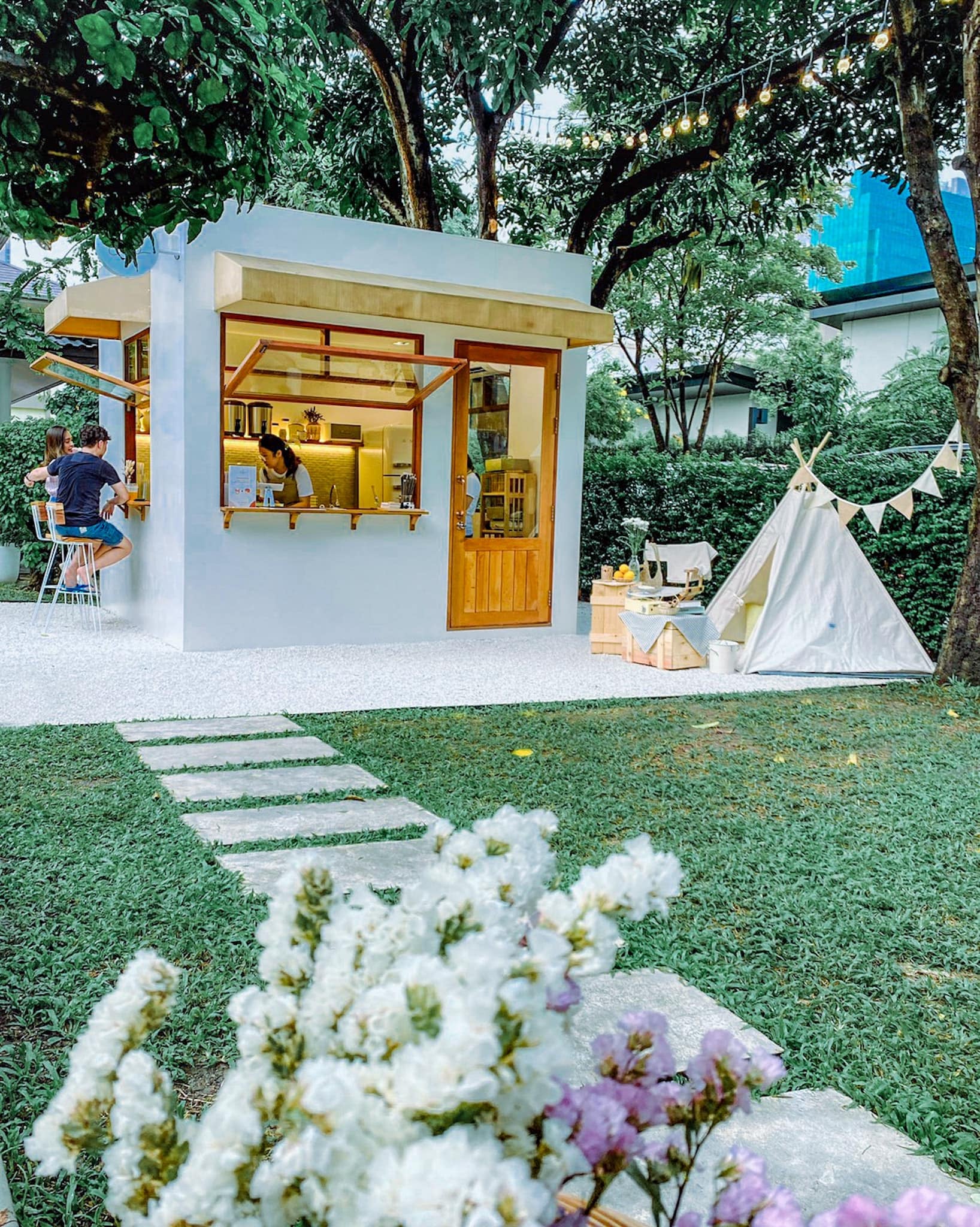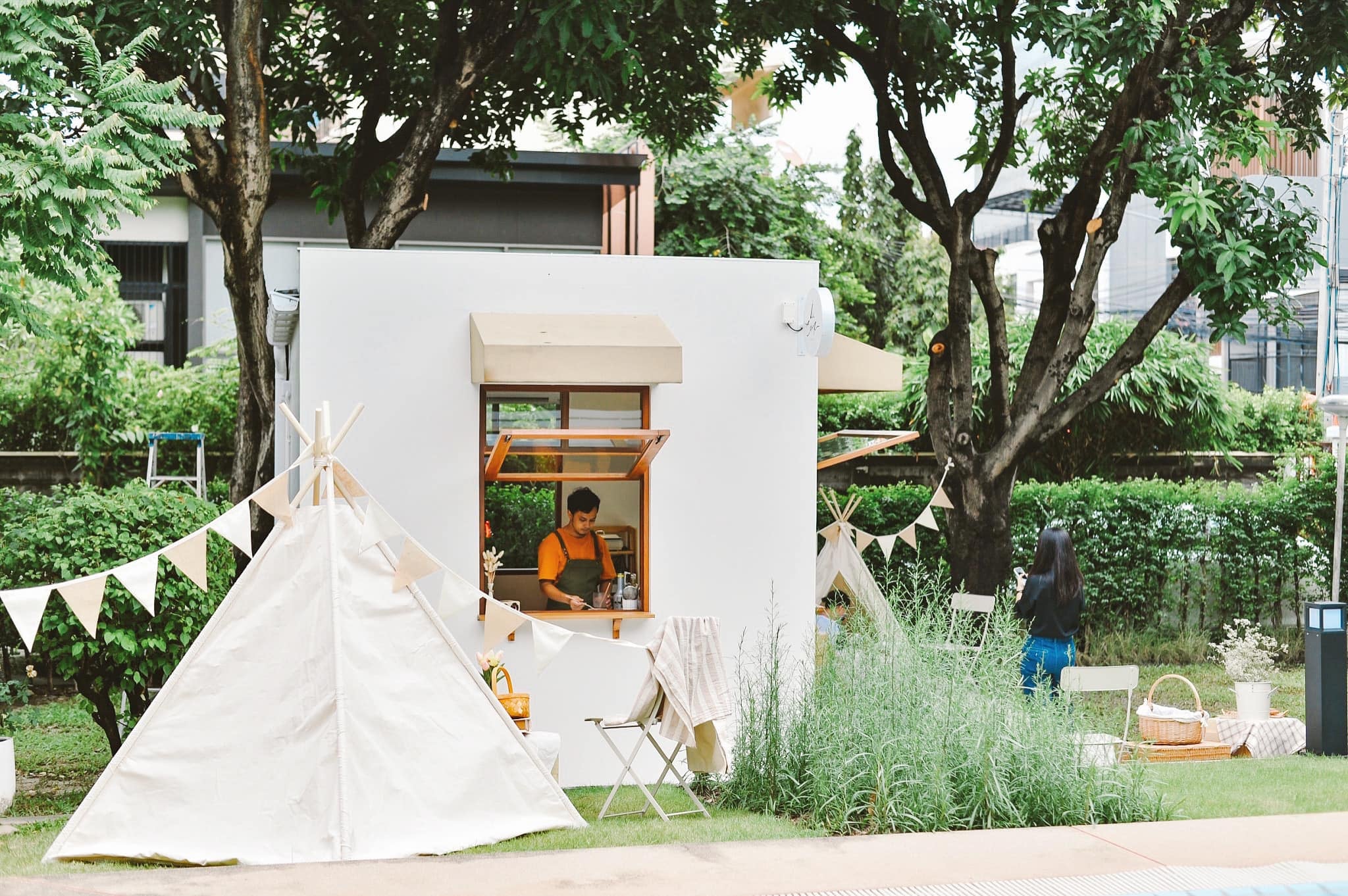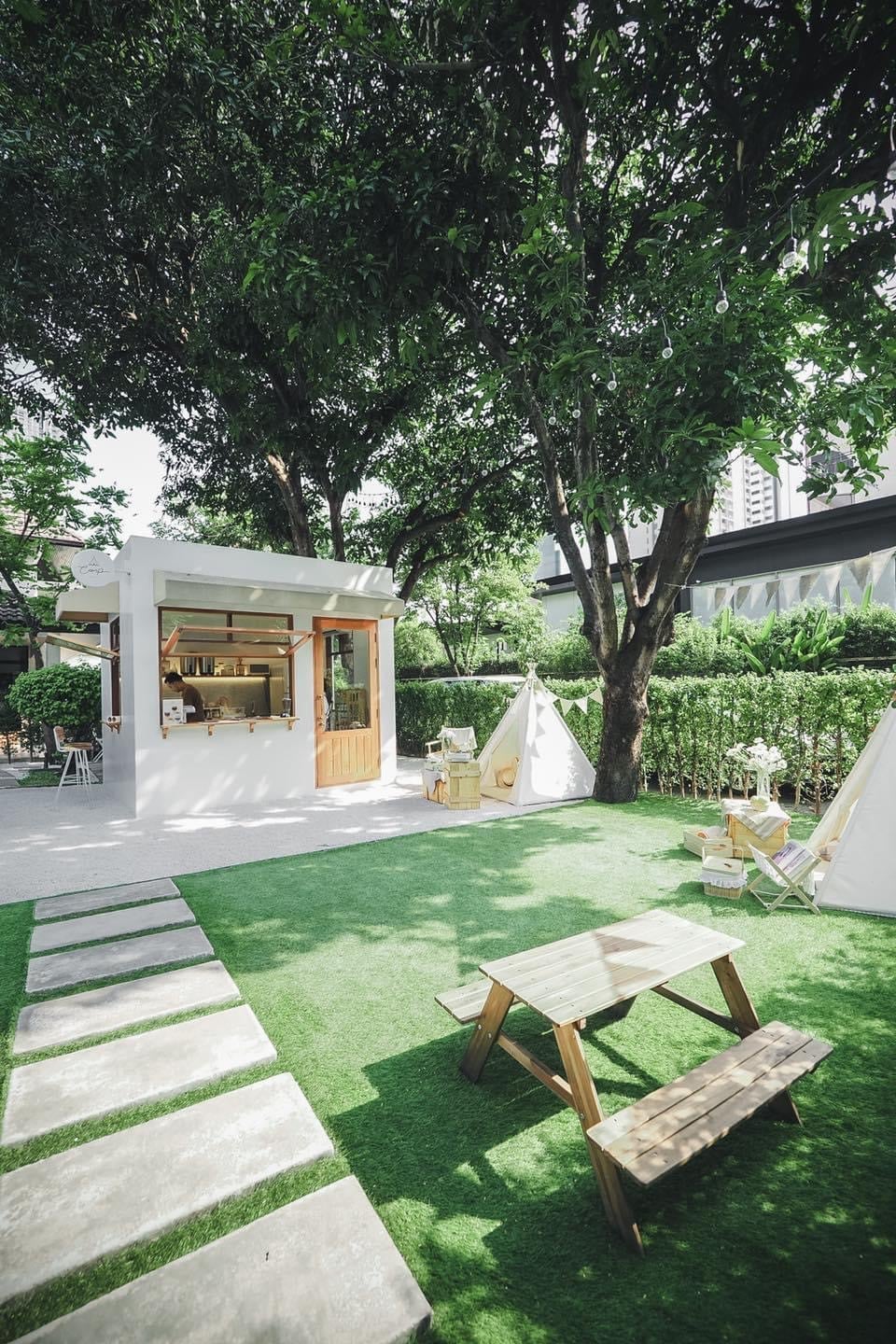 ไอเดียคาเฟ่เล็ก ๆ สไตล์มินิมอล กับบรรยากาศในสวนเขียวขจี ที่ Camp Cafe Ari