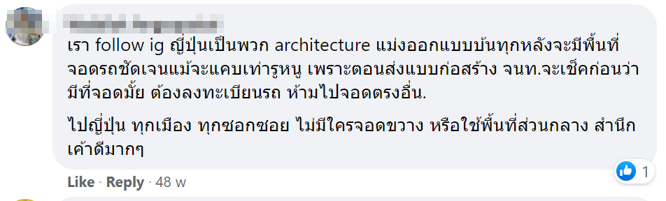 จากนั้นจึงยกตัวอย่างเทียบกับประเทศญี่ปุ่น ในเรื่องของการจอดรถ