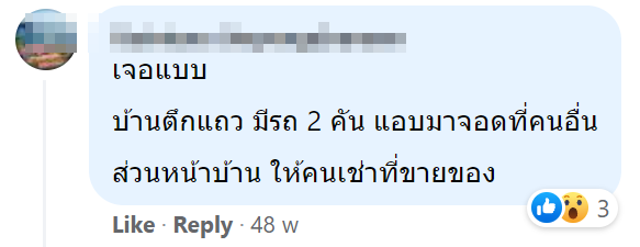อีกคนมาร่วมแชร์ประสบการณ์ ว่าบางบ้านเอารถตัวเองไปจอดบ้านคนอื่น แต่บ้านตัวเองก็ให้เช่าที่ขายของแทน