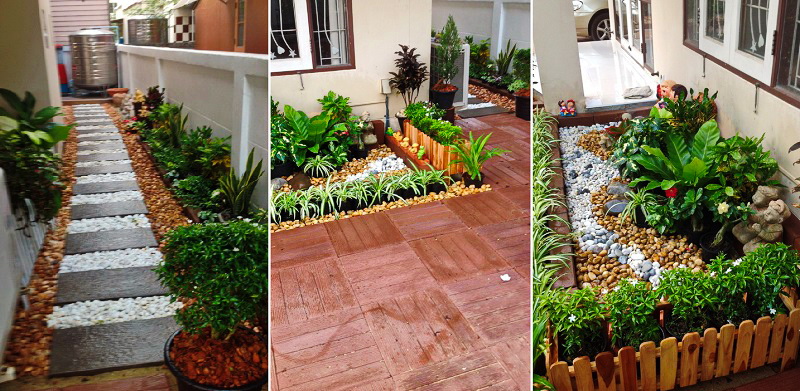 แต่เบื่อเรื่องการตัดหญ้าเลยอยากเปลี่ยนเป็นปูพื้นแทน จึงเริ่มด้วยสองสามีภรรยาช่วยกันปรับพื้นให้เรียบ ถามทราย วางตะแกรง แล้วลงมือปูพื้น ปิดท้ายด้วยการจัดสวนหิน ลงต้นไม้ ไปดูกันเลยค่ะ