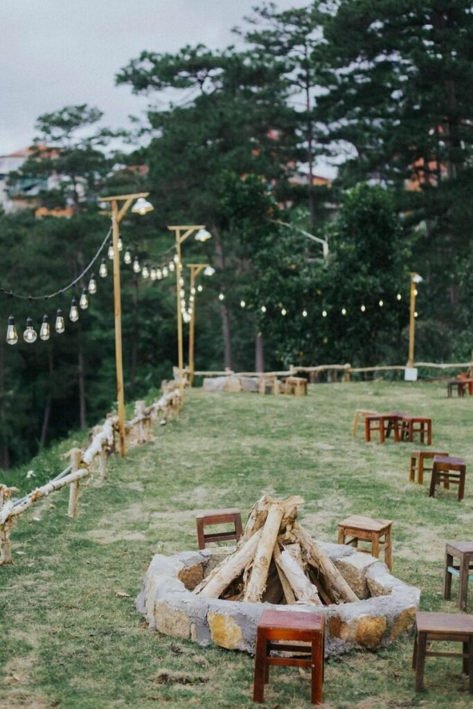 ในส่วนของพื้นที่สนามหญ้าของทางร้าน ก็จัดเป็นโซนแค้มไฟไว้ให้ลูกค้าได้มานั่งผิงไฟชมบรรยากาศยามค่ำคืนกันได้อีกด้วย