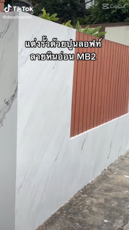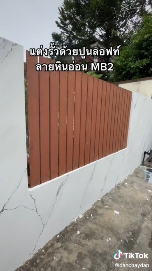 เช่นเดียวกันผู้ใช้บัญชีติ๊กต่อก @danchaydan ที่ได้ทำการตกแต่งรั้วบ้านด้วย “ปูนลอฟท์ลายหินอ่อน” จนได้รั้วบ้านที่มีลายหินอ่อนที่ดูสวยหรูขึ้นมาทันตาเลย