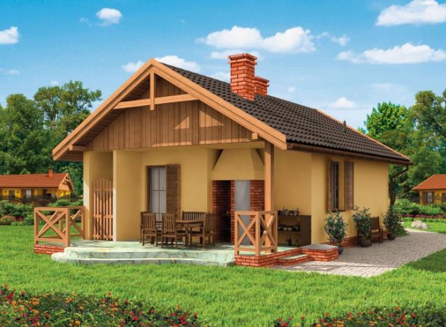 ตัวบ้านขนาดเล็ก กะทัดรัด กำลังดีกับครอบครัวแรกเริ่ม ออกแบบรูปทรงเรียบง่าย จับคู่กับหลังคาทรงจั่ว สีสันสดใส ดูเข้ากันได้ดี และคุ้นตาชาวไทนมาช้านาน ตกแต่งด้วยไม้ตามผนังและหน้าบันหลังคา