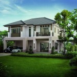 บ้านโครงสร้างคอนกรีต ที่ออกแบบตัวบ้านเรียบง่าย ใช้หลังคาทรงจั่วสีแดงสด ตกแต่งหน้าบันหลังคาด้วยไม้ และเสา ราวระเบียงไม้เช่นกัน ดูเป็นวัสดุที่คุ้นตา และเป็นที่นิยมของคนไทยไม่น้อย