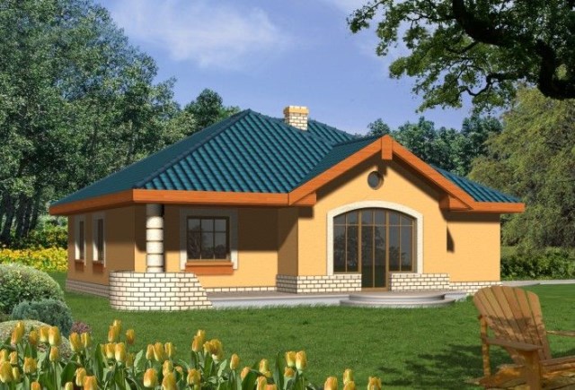 โครงสร้างคอนกรีต ออกแบบบ้านให้มีมิติ และจังหวะของผนัง หลังคาปั้นหยาสีเข้ม ให้ความภูมิฐานเล็กๆแก่ตัวบ้าน ตกแต่งเพิ่มเติมกับไม้ในส่วนของปั้นลมหลังคาอีกด้วย