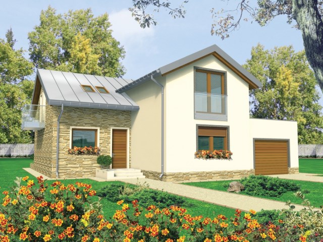ตัวบ้านโครงสร้างคอนกรีต ออกแบบแบบแปลนบ้านที่เรียบง่าย เป็นสองชั้น และตกแต่งด้วยผนังไม้ หินทราย แบบเรียบง่าย ในรอบๆ บ้าน จับคู่กับหลังคาทรงจั่ว ดูสวยงามและภูมิฐานในเวลาเดียวกัน