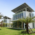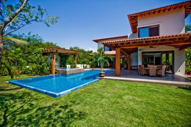ดีไซน์ตัวบ้านให้อยู่กลางสนามหญ้าสีเขียวสด ตกแต่งน้อยๆ ไปกับต้นไม้ใหญ่ ให้ร่มเงาแก่ต้วบ้านได้พอประปราย ใช้ทางเดินเข้า ผ่านสนามหญ้าเข้าสู่ตัวบ้าน มีพื้นที่พักผ่อนตามสวนหย่อม และใต้หลังคา เติมเต็มความต้องการของครอบครัวได้ครบครัน มากับสระว่ายน้ำขนาดกำลังดี ติดกับเฉลียงและสนามหญ้า ร่มรื่นเป็นที่สุด