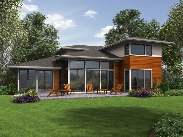 ออกแบบบ้านไว้กลางแปลงที่ดิน ตกแต่งด้วยสนามหญ้ารอบตัวบ้าน ทางเท้าจากคอนกรีตปูเข้าสู่ตัวบ้าน สร้างทางเข้าบ้าน และจอดรถ รวมทั้งรองรับกิจกรรมกลางแจ้งได้เล็กน้อย ต้นไม้ใหญ่ตามแนวรั้วในด้านหลัง เหมือนบ้านทั่วๆไป